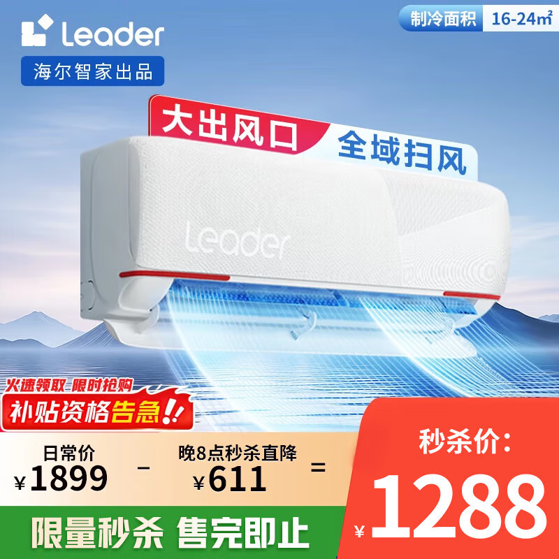 【京东自营】统帅海尔空调海尔智家出品【大风口】1.5匹新一级超省电变频空调挂机KFR-35GW/05