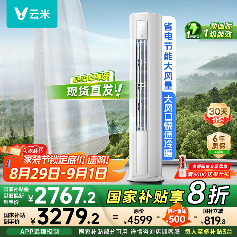 云米(VIOMI)空调新一级能效Smart 3智能变频冷暖 家电国家补贴 3匹客厅圆柱立式柜机KFRd-72LW/Y3PF6-A1空调扇