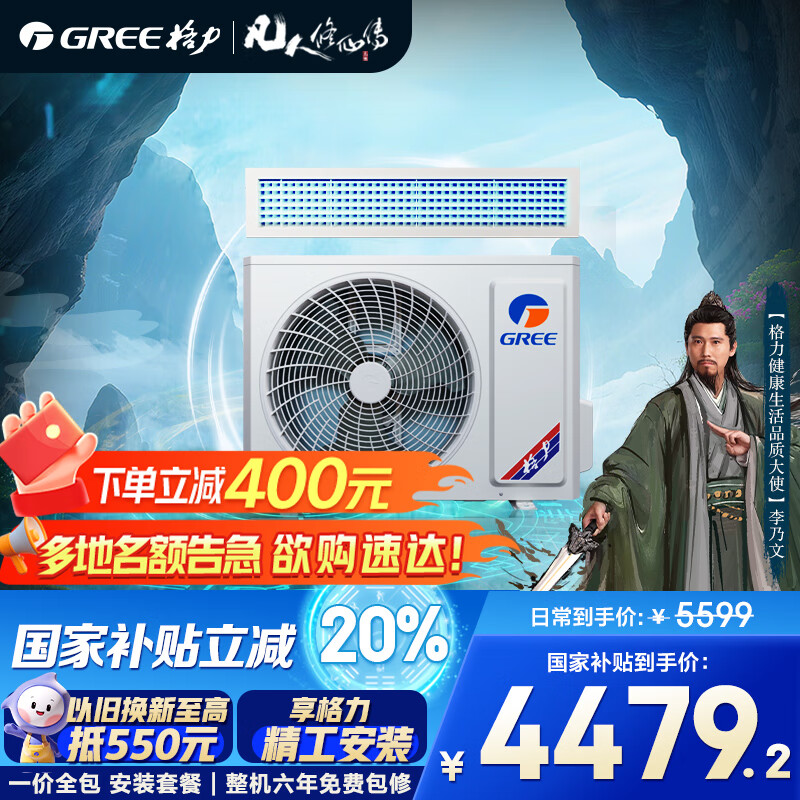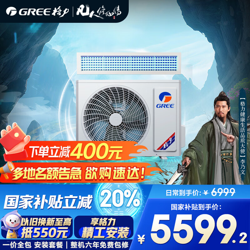 3、格力 中央空调 风管机一拖一 K+风静享1.5匹家用嵌入式空调 1级能效FJR3.5Pd/(京东参考价:5999)
