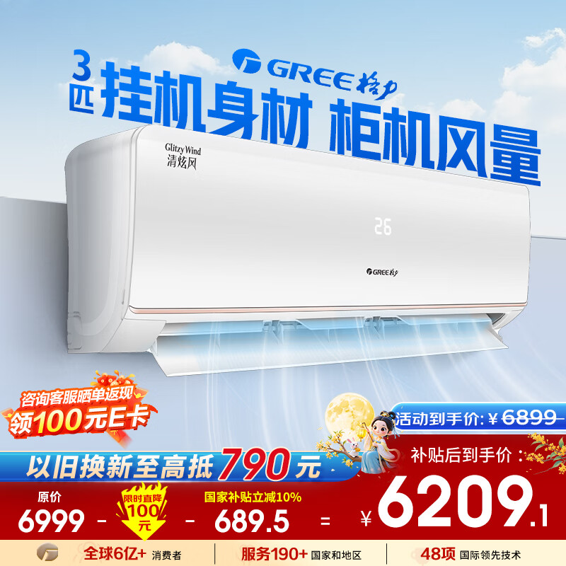格力(GREE)3匹 清炫风/京韵 1级能效WiFi智控 壁挂式客厅商铺大挂机 格力省电空调KFR-72GW/NhKf1BAt国家补贴