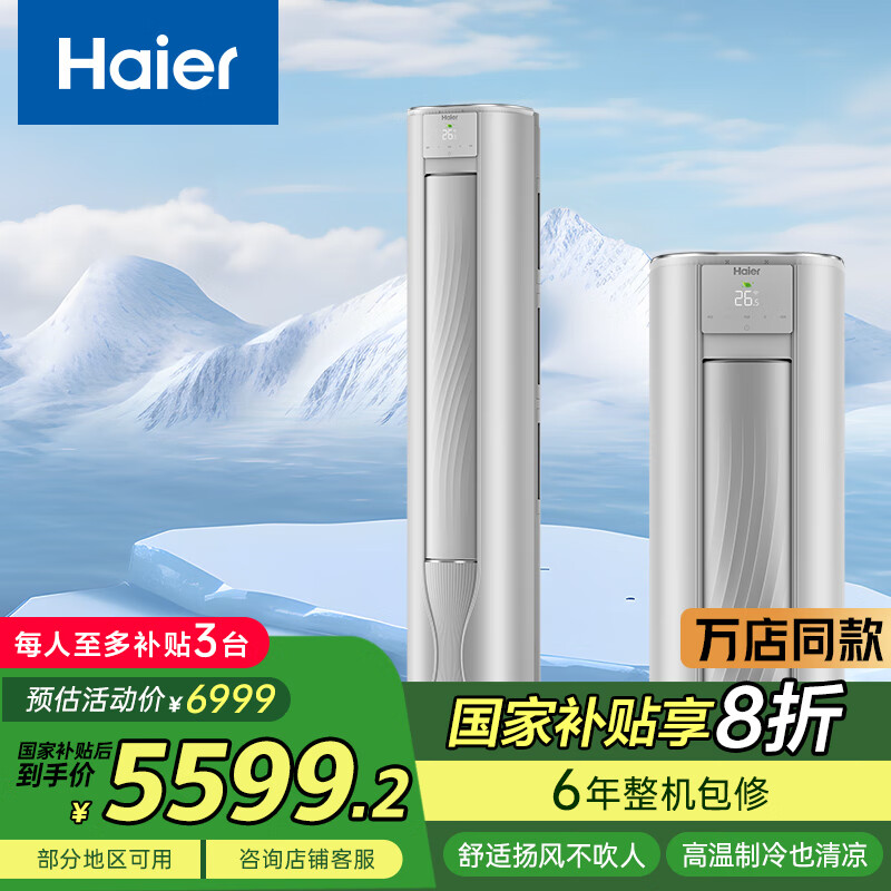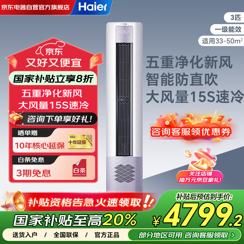 海尔空调 京喜 3匹 一级能效 柜机 客厅空调 KFR-72LW/81@U1-Hj 以旧换新 智能操控 国家补贴