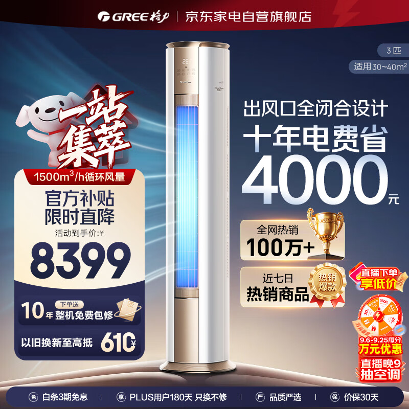 这款格力3匹柜机,我得说说它的冷暖双功能,一年四季都能派上用场。它还采用了变频技术和新一级能效,用起来应该会比较省电。而且它有超大循环风量,制冷制热速度嗖嗖的快,体感应该会更舒适。