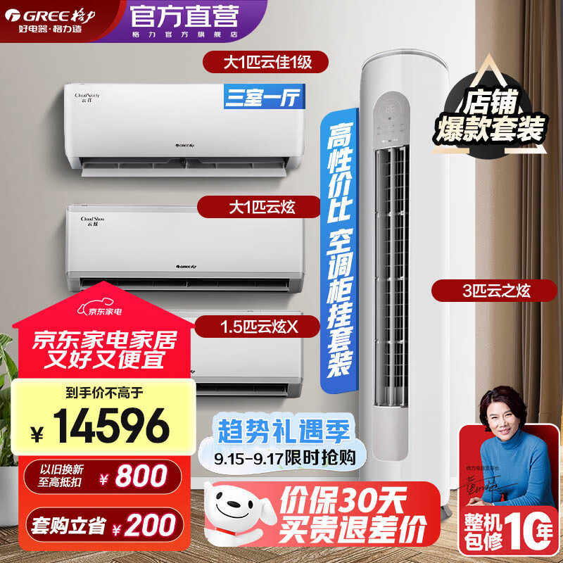 【品牌直营】格力新能效自清洁空调组合套装店铺柜挂性价比套装26云炫+26云佳一级+35云炫X+72云