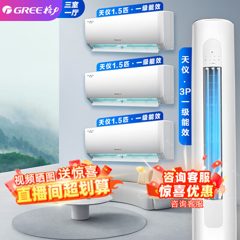 【品牌专卖】格力空调天仪系列套装新一级能效变频冷暖壁挂式卧室挂机柜机套装节能家用【官仓直发】【大三室
