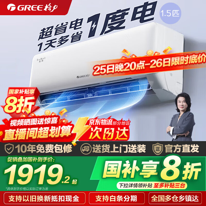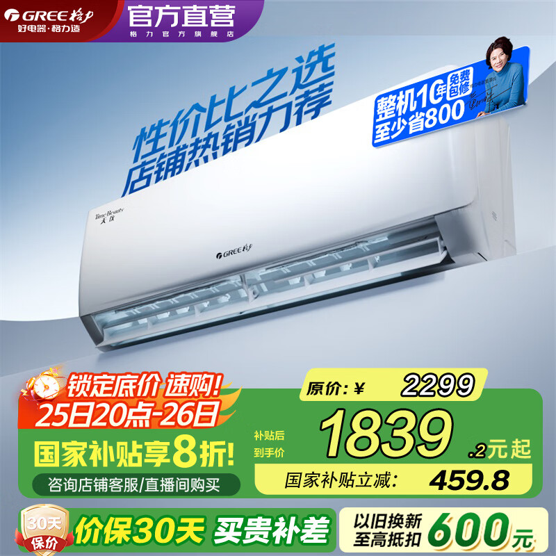 格力(GREE)空调 大1匹/1.5匹 天仪 新一级能效 变频冷暖自清洁 卧室空调挂机 家电国家补贴 以旧换新 大1匹 一级能效 天仪挂机