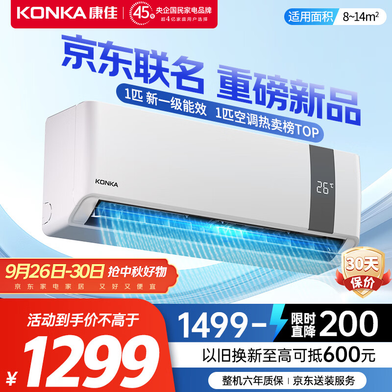 康佳(KONKA)空调1匹 京东联名超省电 新一级能效变频冷暖 壁挂式卧室挂机 KFR-25GW/N5B10 国家补贴以旧换新