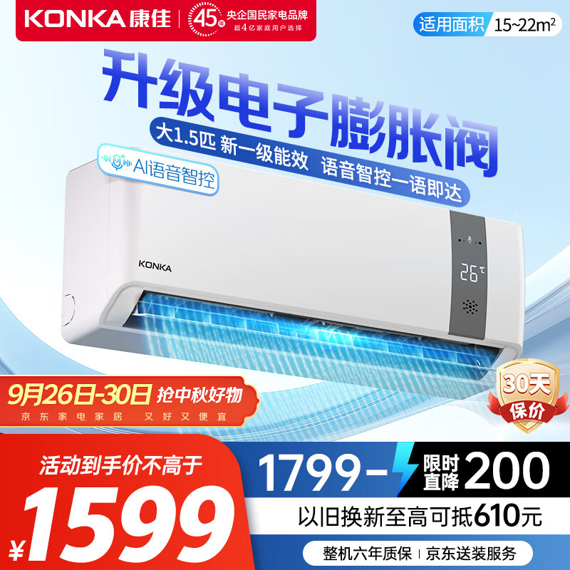 康佳(KONKA)大1.5匹 新一级变频 家电国家补贴 AI智慧语音 冷暖省电壁挂式空调挂机KFR-35GW/MA11 以旧换新
