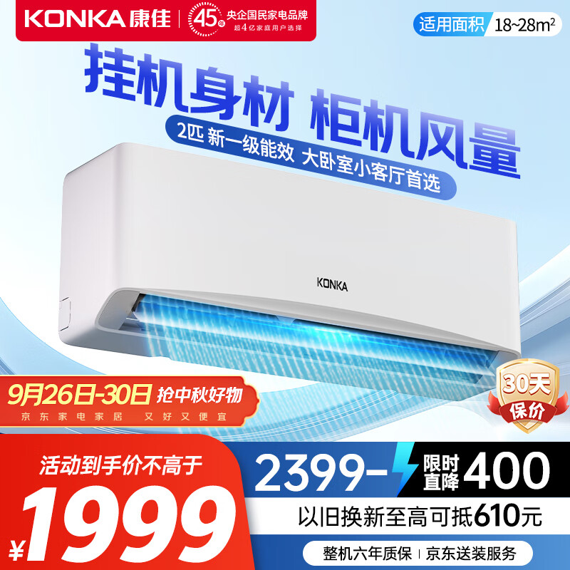 康佳(KONKA)空调2匹 新一级能效省电 家电国家补贴 变频冷暖 大风量空调挂机 KFR-46GW/LV1 以旧换新