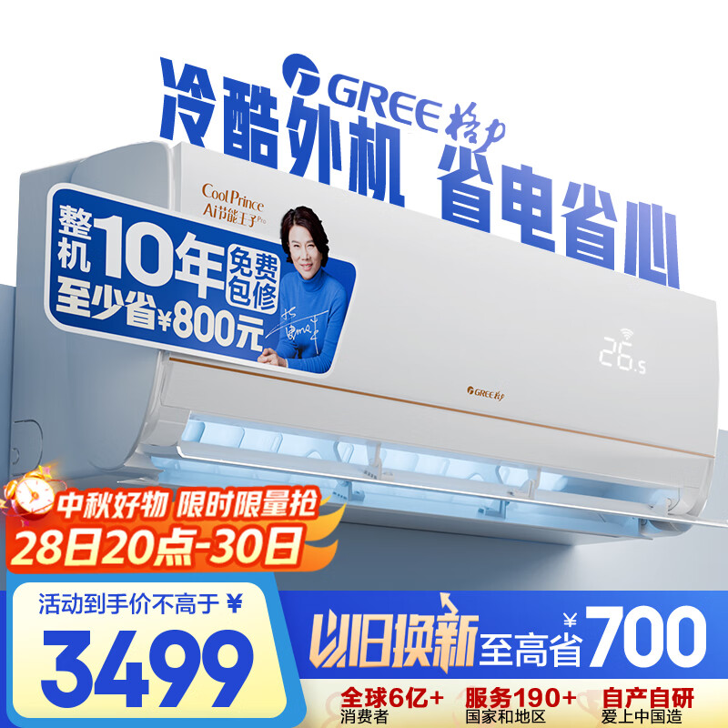 格力大1匹AI节能王子Pro 新1级变频卧室挂机 Ai节能省电 舒适风不吹人空调KFR-26GW/NhLb1BAj家电补贴