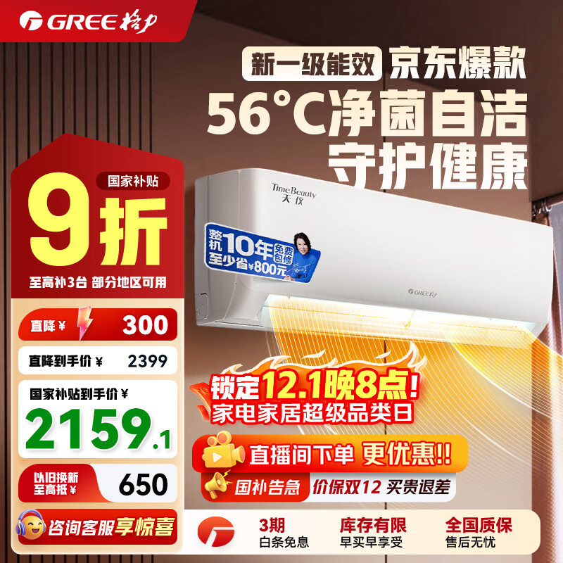 格力(GREE)天仪(云欢同款) 新一级 变频冷暖 56℃自清洁 家用节能壁挂式卧室空调挂机 以旧换新 家电国家补贴 1.5匹一级能效天仪挂机 格力