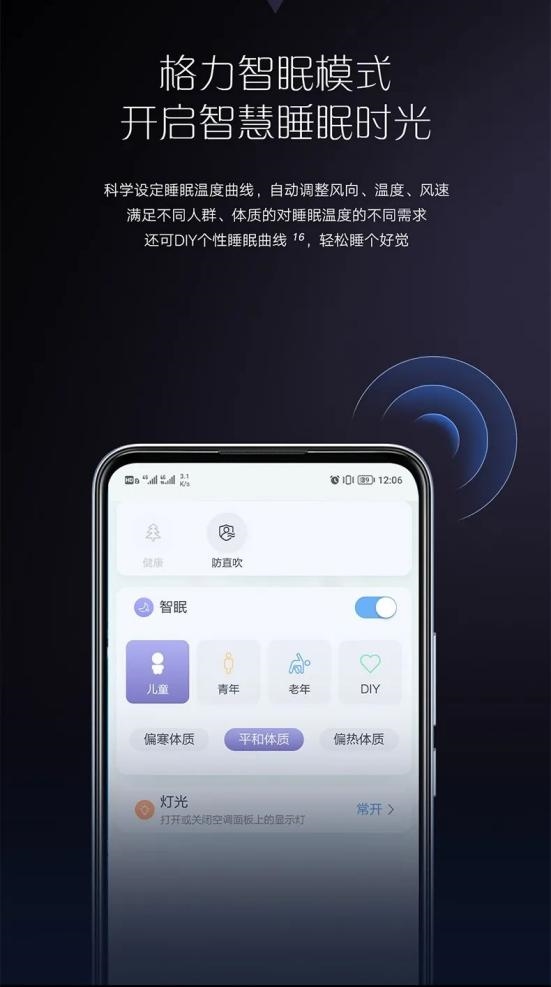 以格力“星梦”睡眠空调为例,其搭载的智眠模式,可依据人体睡眠温度节律科学设定睡眠温度曲线,能自动调整风向、风速与温度,精准适配不同人群、不同体质的睡眠需求——无论是畏寒的老人,还是怕热易醒的青年,都能找到专属的舒适温区。同时,产品支持自主设定个性睡眠曲线,将用户习惯的舒适温度记忆存储,配合0.5℃的精细温控技术,让每一次入睡都拥有如量身定制般的细腻温感。